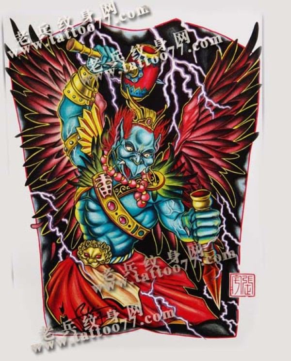 满背纹身图案满背雷震子纹身图案_后背纹身图案大全_纹身图吧