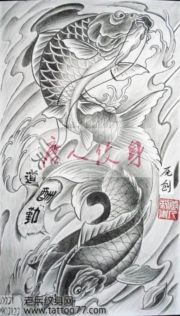 一款满背鲤鱼纹身手稿_后背纹身图案大全_纹身图吧