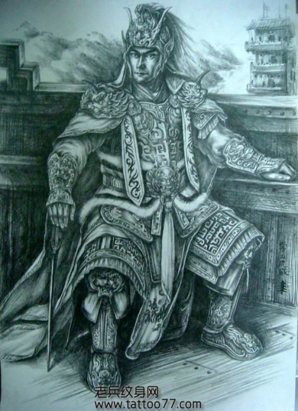 超经典满背赵云纹身手稿_后背纹身图案大全_纹身图吧