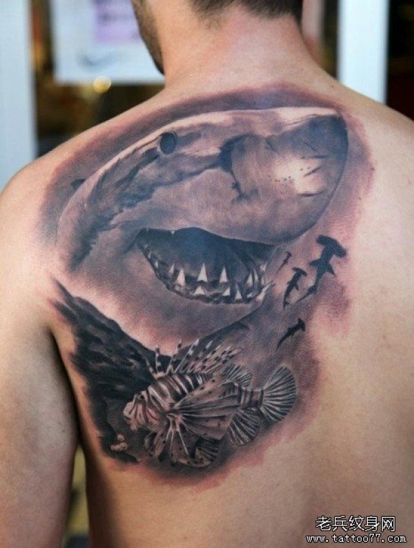 后背上一款鲨鱼纹身图案_后背纹身图案大全_纹身图吧