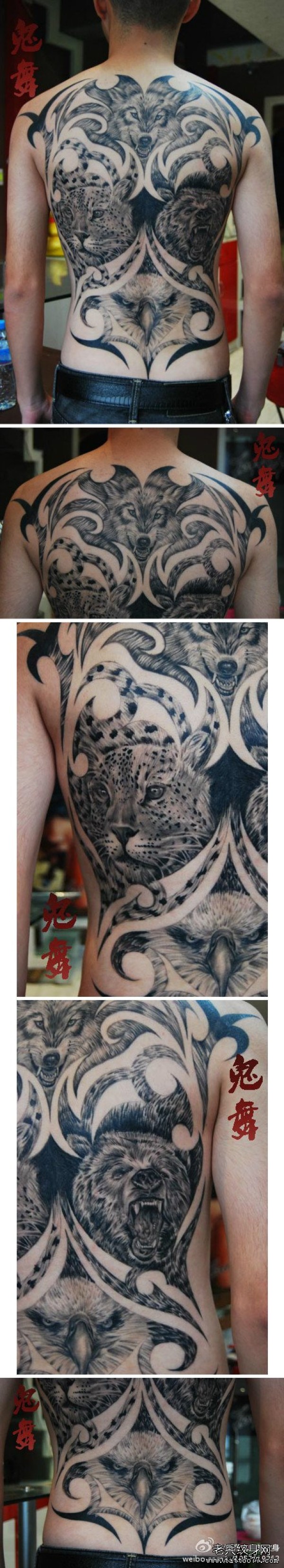 超酷霸气的满背狼老鹰纹身图案_后背纹身图案大全_纹身图吧