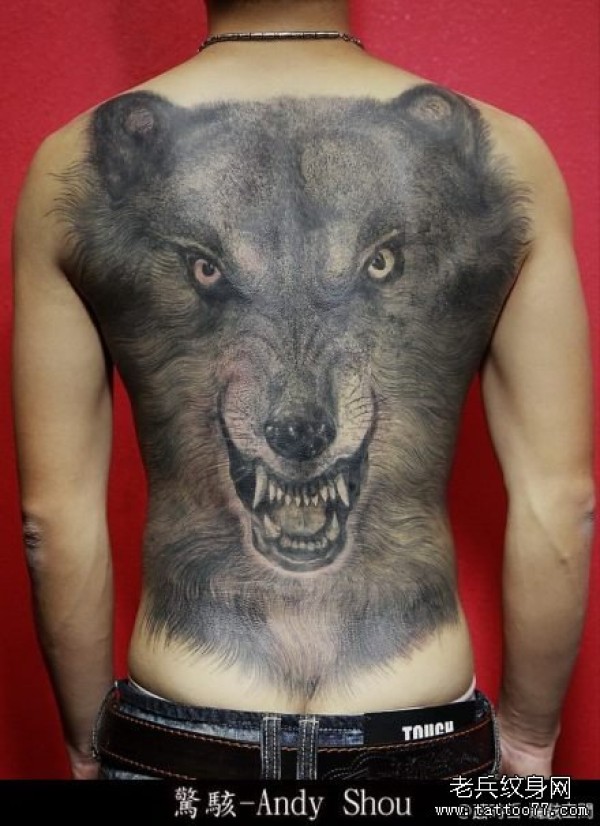 男生后背很酷经典的满背狼头纹身图案_后背纹身图案大全_纹身图吧