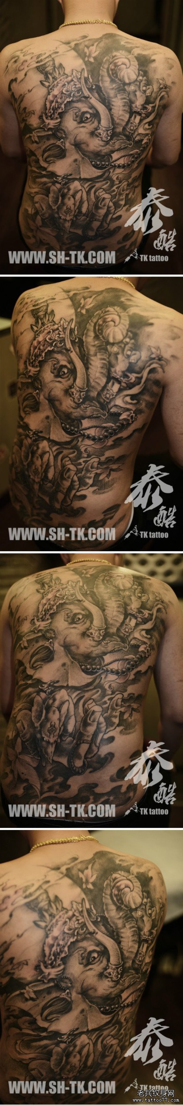 后背超酷经典的满背象神纹身图案_后背纹身图案大全_纹身图吧