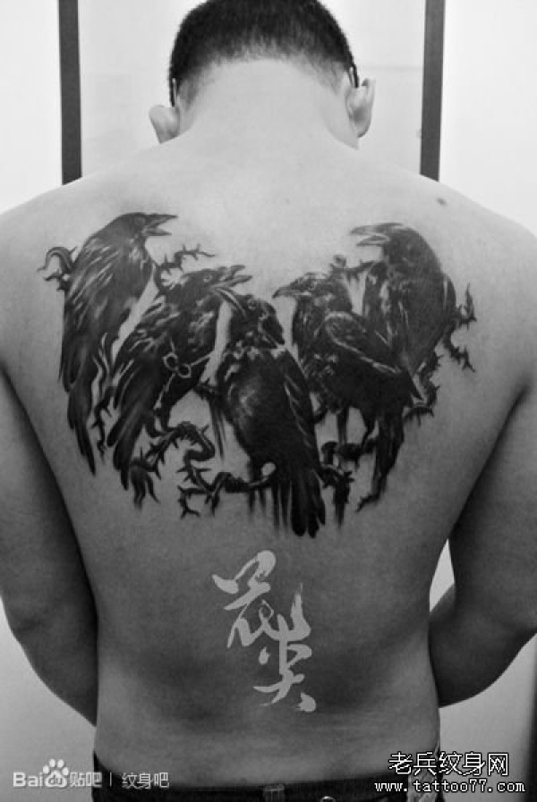 男人后背帅气的乌鸦纹身图案_后背纹身图案大全_纹身图吧