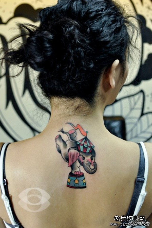美女后背可爱潮流的小象纹身图案_后背纹身图案大全_纹身图吧