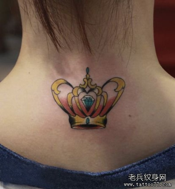 女孩子背部时尚流行的皇冠纹身图案_后背纹身图案大全_纹身图吧