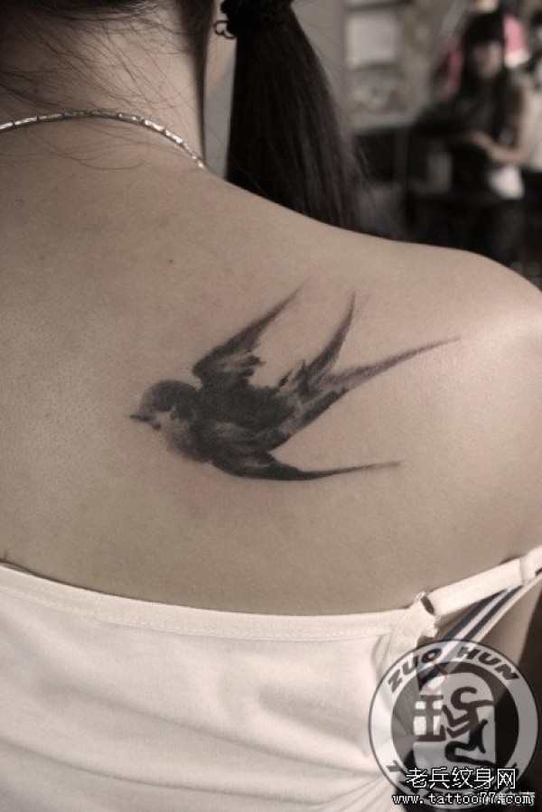 美女后背时尚精美的水墨燕子纹身图案_后背纹身图案大全_纹身图吧