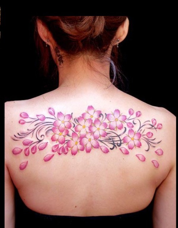美女后背樱花纹身图案_后背纹身图案大全_纹身图吧
