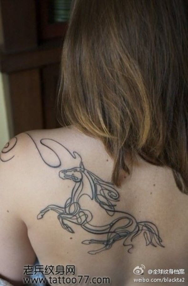 美女背部简单的马纹身图案_后背纹身图案大全_纹身图吧
