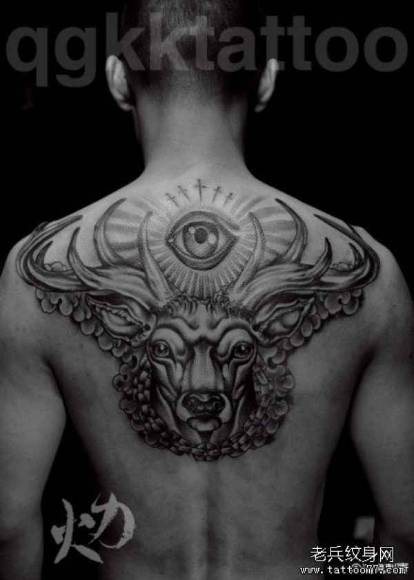男人后背超酷的半背鹿纹身图案_后背纹身图案大全_纹身图吧