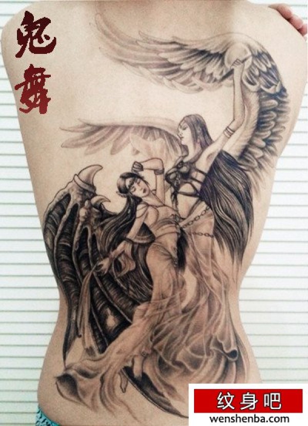 两个仙女满背纹身好漂亮_后背纹身图案大全_纹身图吧