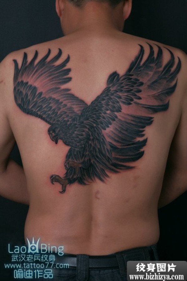 满后背展翅大雄鹰纹身图片_后背纹身图案大全_纹身图吧