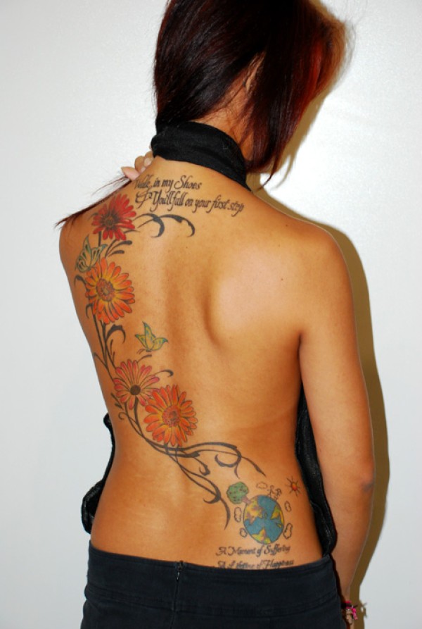 背部藤蔓雏菊纹身图案_后背纹身图案大全_纹身图吧