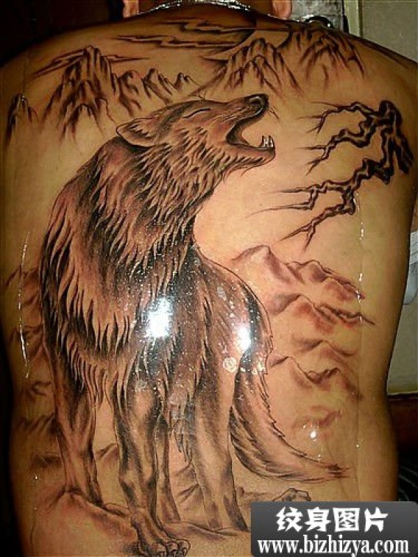 满背孤狼纹身作品_后背纹身图案大全_纹身图吧