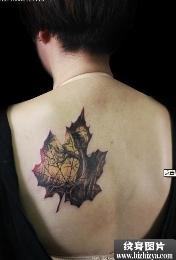 背部黑色枫叶刺青作品_后背纹身图案大全_纹身图吧