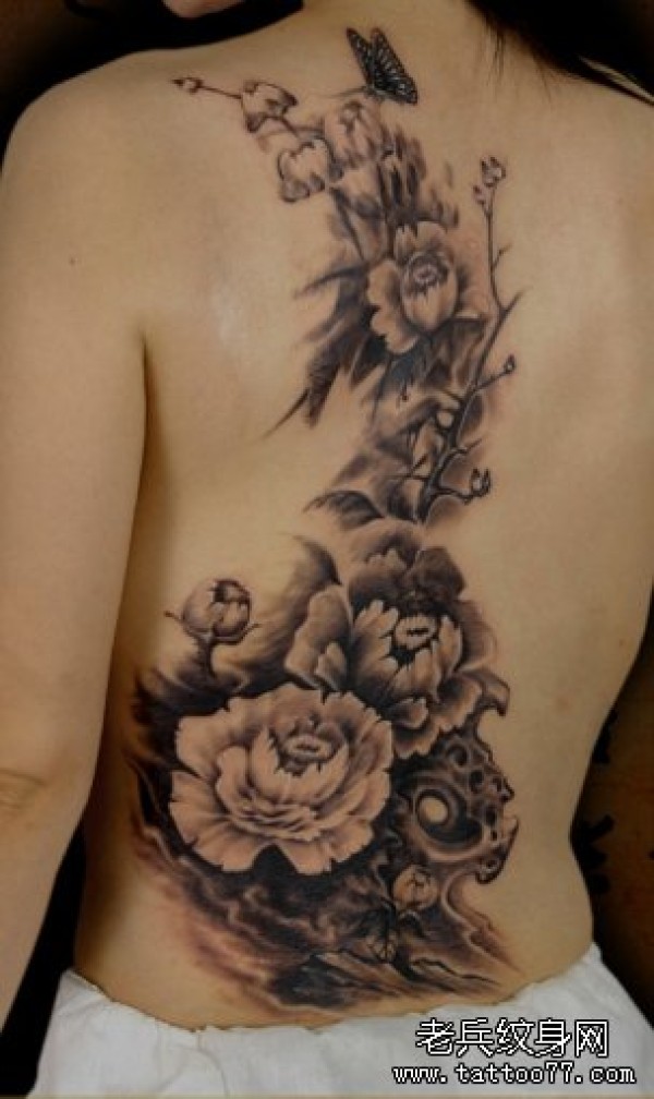 美女背部唯美好看的牡丹花纹身图案_后背纹身图案大全_纹身图吧