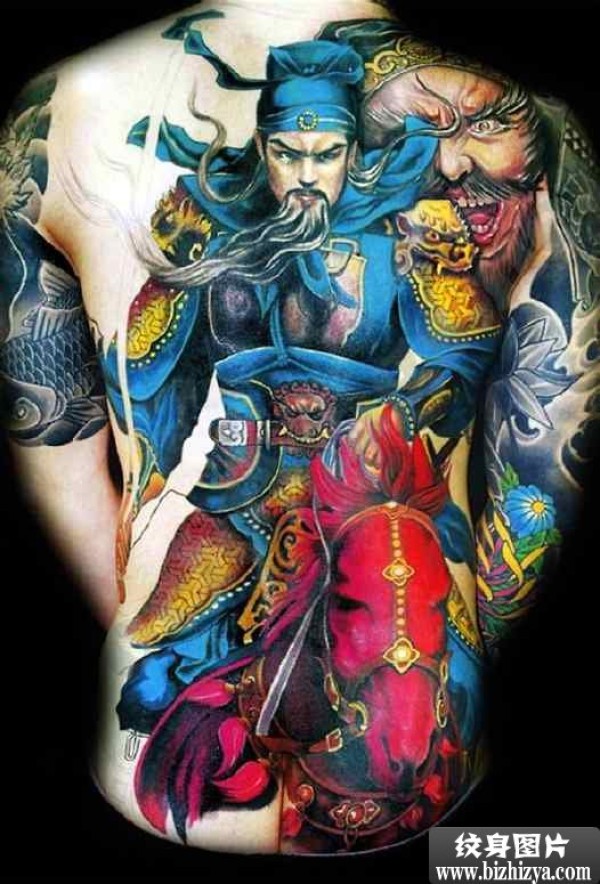 满背红色战马上的张飞关羽出战纹身作品_后背纹身图案大全_纹身图吧