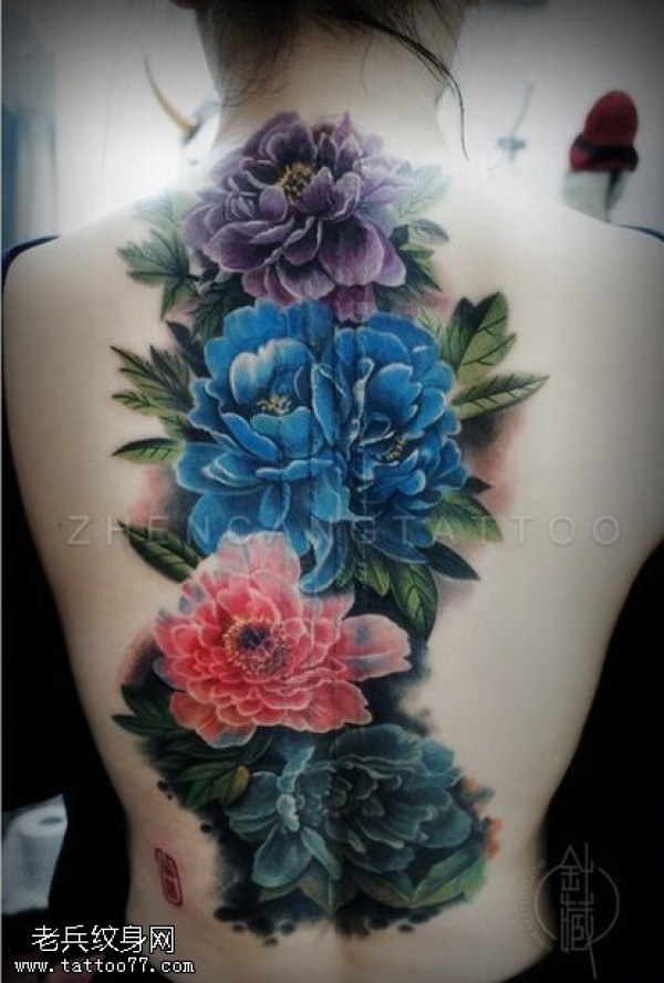 女性背部牡丹花纹身图案_后背纹身图案大全_纹身图吧