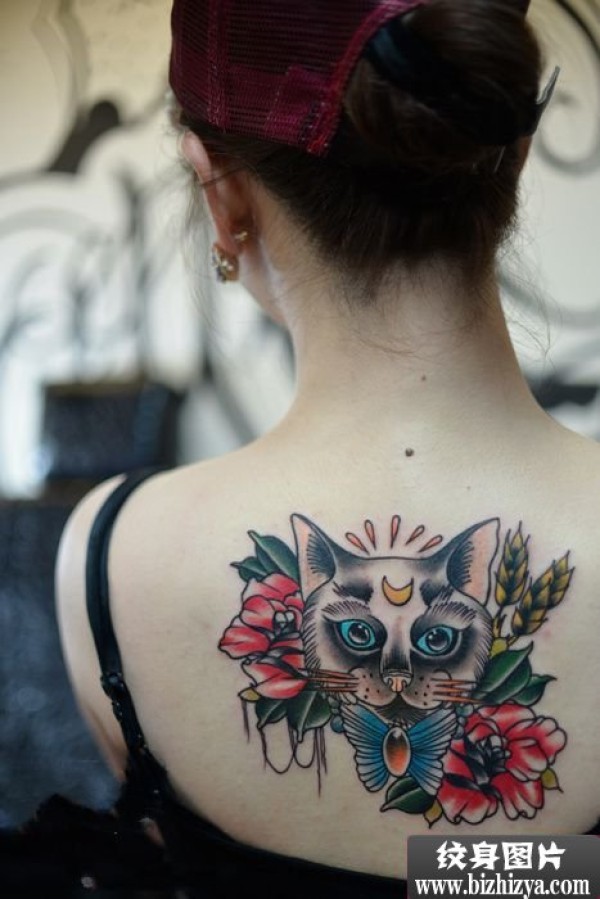 后背可爱喵星人创意纹身图案图片_后背纹身图案大全_纹身图吧