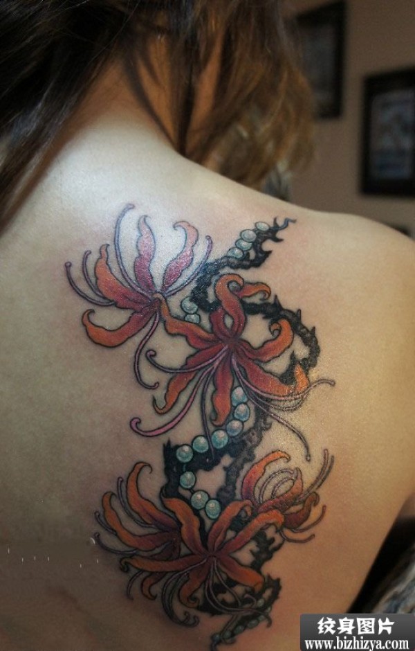 背部彼岸花纹身分享_后背纹身图案大全_纹身图吧