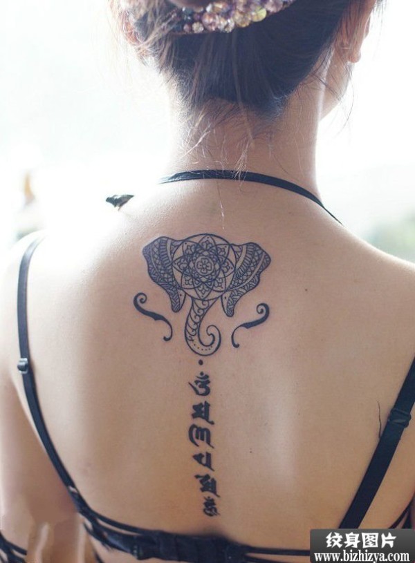 六字真言与梵花象背部纹身图案图片_后背纹身图案大全_纹身图吧