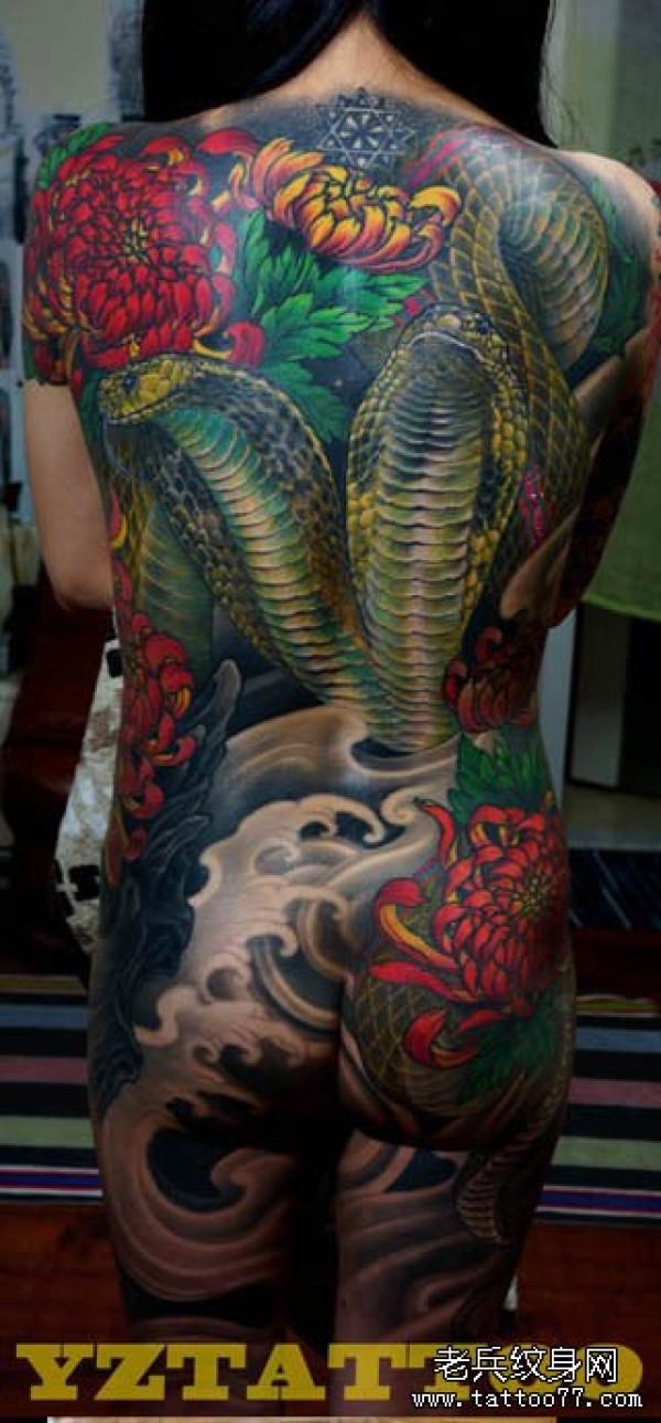霸气的美女满背眼镜蛇纹身图案_后背纹身图案大全_纹身图吧