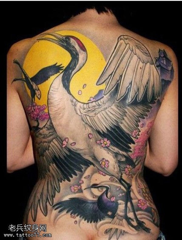 彩色满背仙鹤纹身图案_后背纹身图案大全_纹身图吧