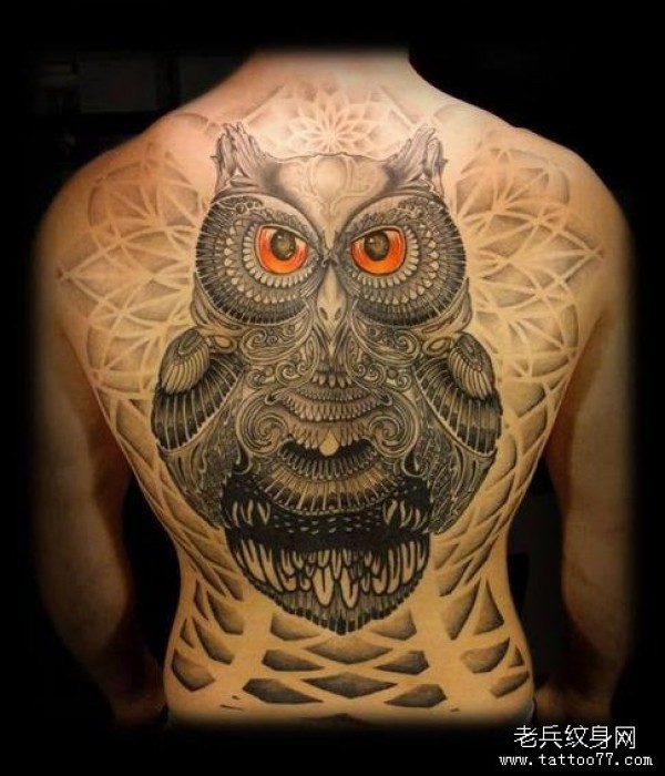 一款满背的猫头鹰纹身图案_后背纹身图案大全_纹身图吧