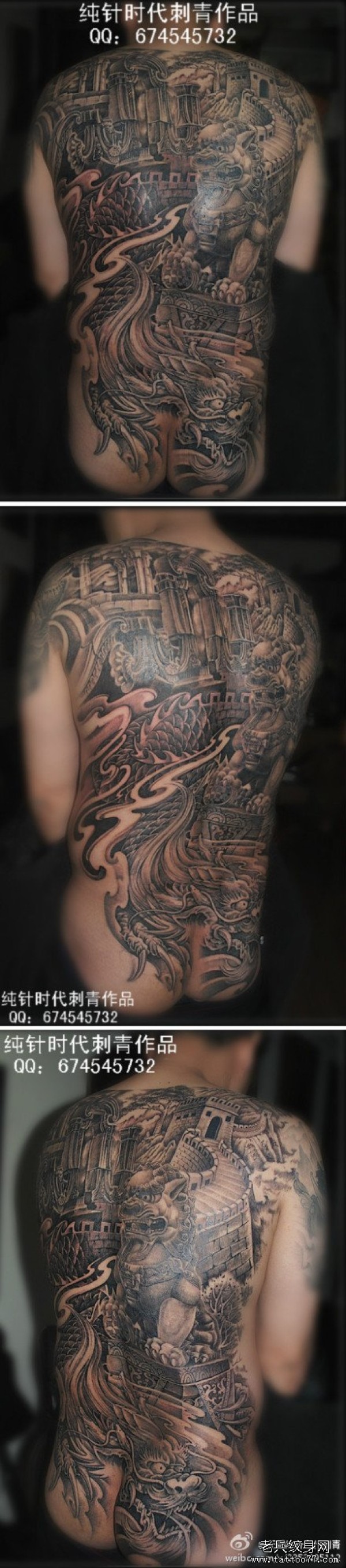 霸气超酷的满背石狮子万里长城圆明园纹身图案_后背纹身图案大全_纹身图吧