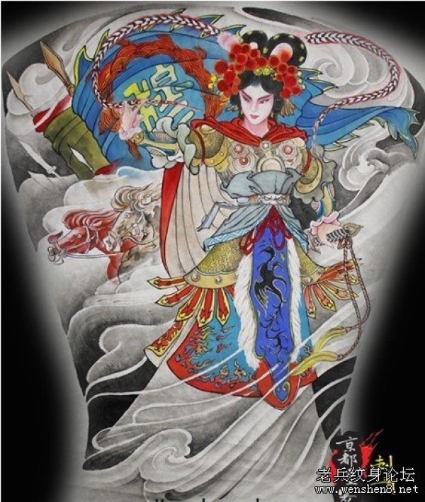 美女纹身图案满背美女穆桂英纹身图案_后背纹身图案大全_纹身图吧