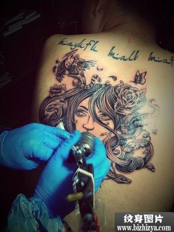 男人后背可怕美女蛇纹身过程图案图片_后背纹身图案大全_纹身图吧