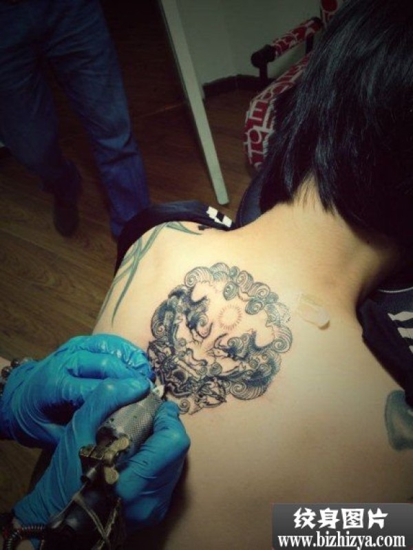 后背个性霸气唐狮子纹身过程图案图片_后背纹身图案大全_纹身图吧