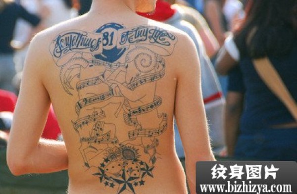 男生后背个性乐谱创意纹身图案图片_后背纹身图案大全_纹身图吧