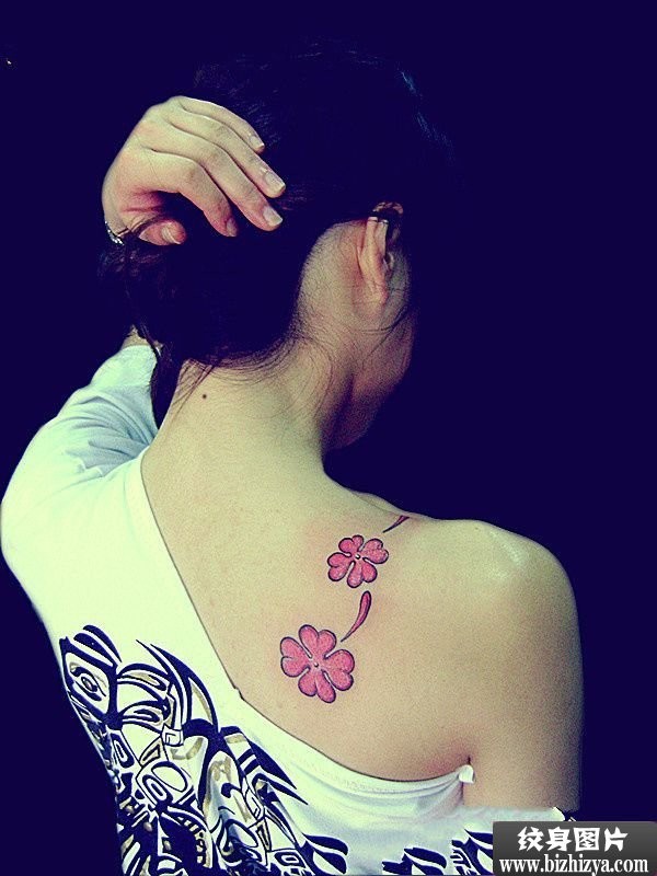 美女背部梅花纹身_后背纹身图案大全_纹身图吧