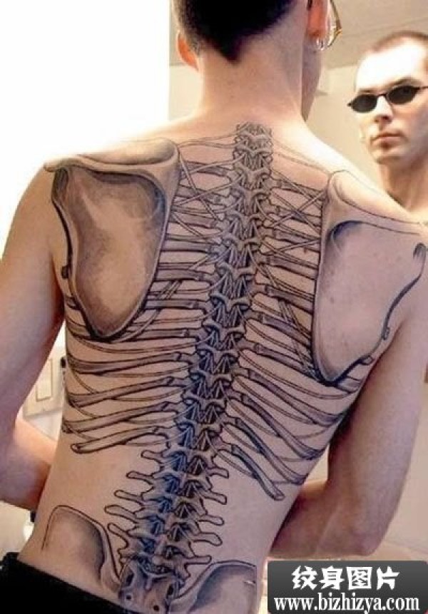 背部个性骨架纹身图案图片_后背纹身图案大全_纹身图吧