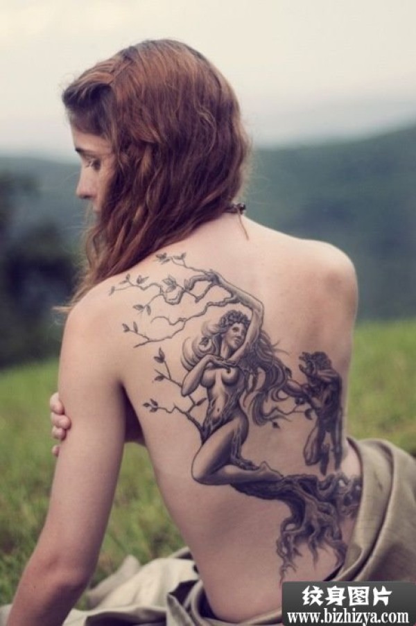 创意树枝美女后背刺青图案图片_后背纹身图案大全_纹身图吧