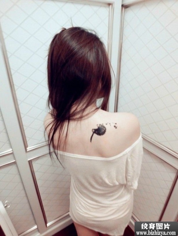 后背唯美飞舞蒲公英纹身图案图片_后背纹身图案大全_纹身图吧