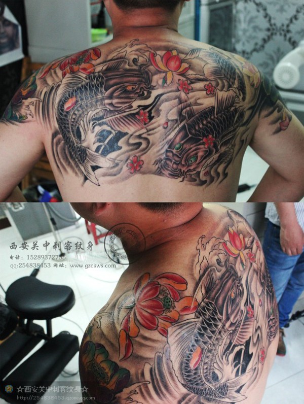 关中刺客 后背鱼纹身西安关中刺客纹身_后背纹身图案大全_纹身图吧