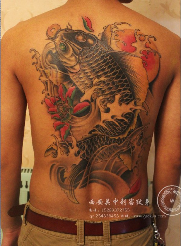 关中刺客 满背鱼纹身西安关中刺客纹身_后背纹身图案大全_纹身图吧
