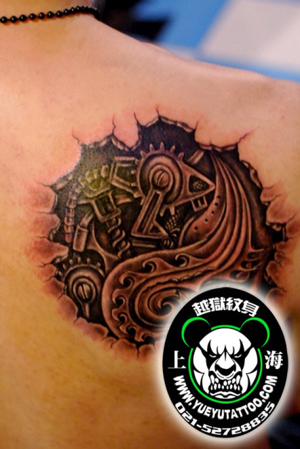 背部圆形机械纹身图案上海越狱纹身店作品_后背纹身图案大全_纹身图吧