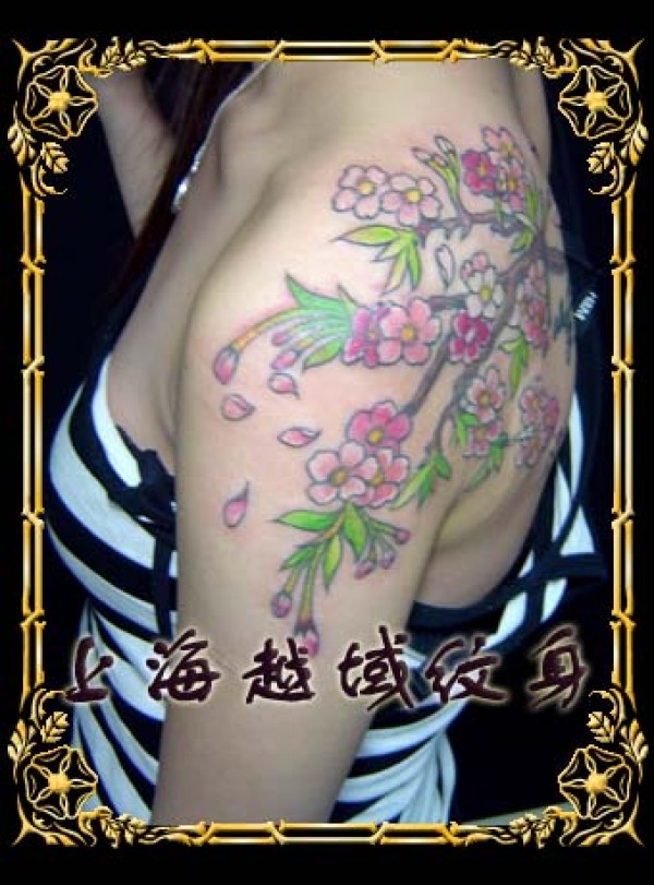 背部樱花纹身图案上海越域纹身店作品_后背纹身图案大全_纹身图吧