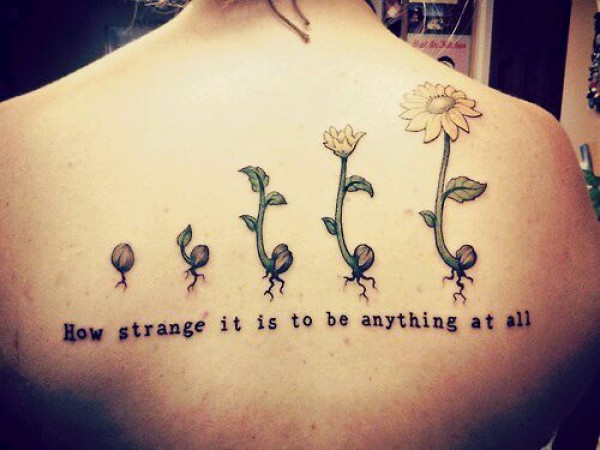 推荐一款美女后背个性时尚的向日葵纹身图案_后背纹身图案大全_纹身图吧