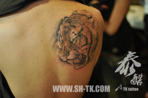 后背很酷帅气的一款彩色虎头纹身图案_后背纹身图案大全_纹身图吧