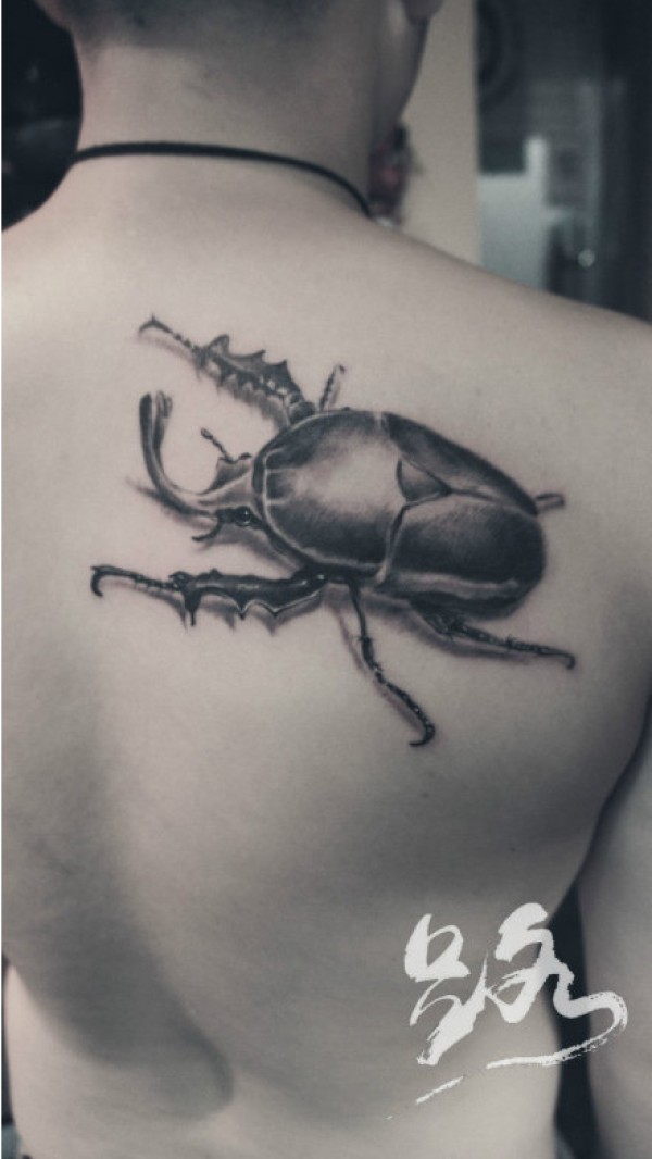 后背经典时尚的一款独角仙纹身图案_后背纹身图案大全_纹身图吧