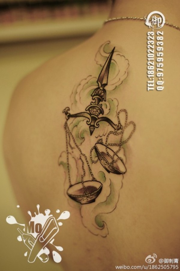 男生后背经典时尚的天秤座纹身图案_后背纹身图案大全_纹身图吧