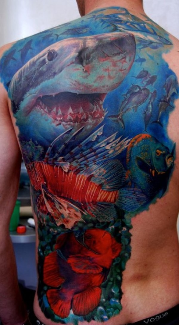 很酷超帅的满背鲨鱼纹身图案_后背纹身图案大全_纹身图吧