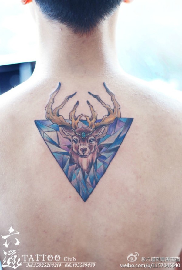 男生后背时尚经典的麋鹿纹身图案_后背纹身图案大全_纹身图吧