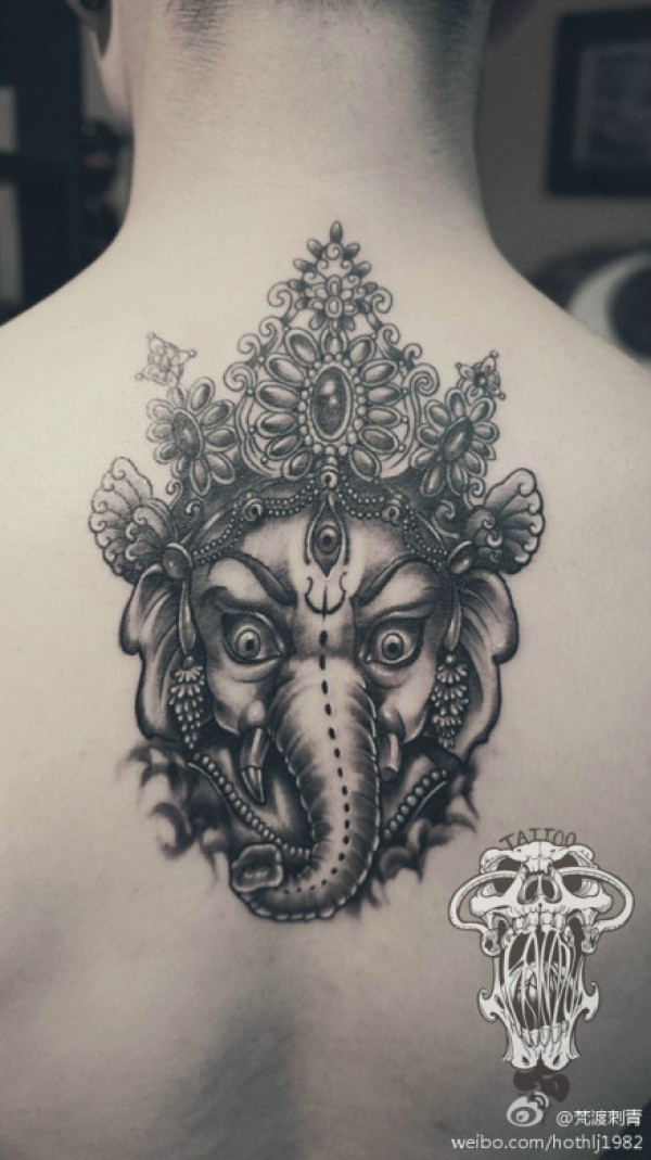 男生后背眼神很帅的象神纹身图案_后背纹身图案大全_纹身图吧