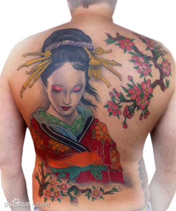 后背经典漂亮的美女艺妓纹身图案_后背纹身图案大全_纹身图吧