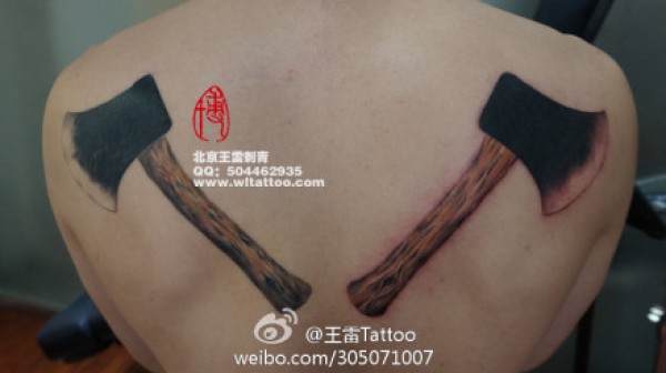 男生后背经典的斧头纹身图案_后背纹身图案大全_纹身图吧
